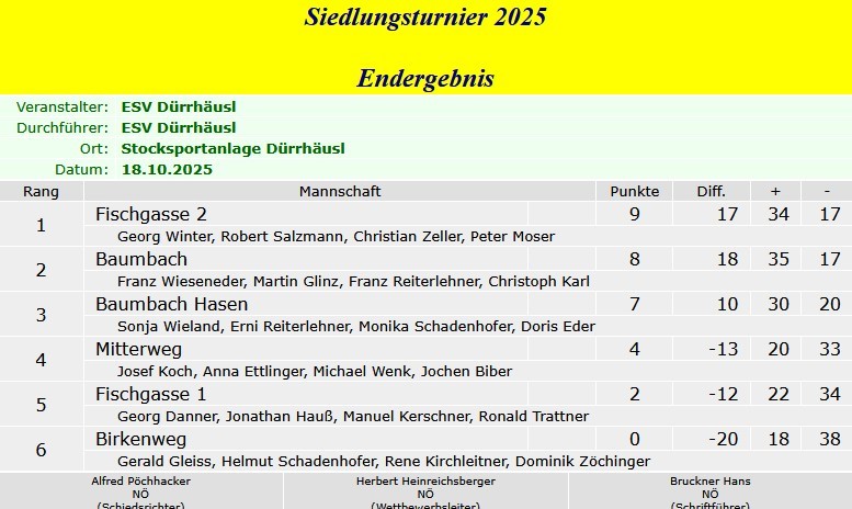 Stocksport Siedlungsturnier 2025